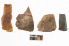 | Description / विवरण | There are n 4 utilized flake cores. There are multi directional irregular scar pattern on them. Two are tapering at one end and two have blunted edges. |