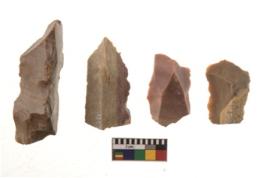 | Description / विवरण | There are n 4 flakes tool; there are large flakes with sides trimmed, Marks of secondary flaking are present on the both the faces.The dorsal is relatively flat. |