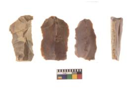 | Description / विवरण | There are n 4 flakes tool; there are flakes tool with prominent flaking marks. It made up of a large flakes with sides trimmed. It is rectangular in shaped. |