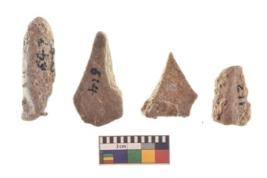| Description / विवरण | There are n 4 of utilized worked cores and show irregular scar pattern. Three are tapering at one end and one has a broken tip. |