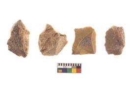 | Description / विवरण | There are n 4 of utilized worked cores and show irregular scar pattern. Two are tapering at one end. |