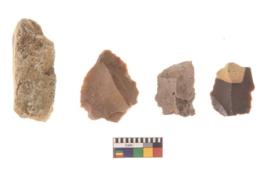 | Description / विवरण | There are n 4 flakes tool; there are large flakes with sides trimmed, Marks of secondary flaking are present on the both the faces.The dorsal is relatively flat. |