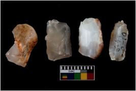 | Description / विवरण | Four worked utilised cores. Flakes removed from few sides. Most of them are uneven and few are tapering at one end. |