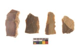 | Description / विवरण | There are n 4 flakes tool; there are flakes tool with prominent flaking marks. It made up of a large flakes with sides trimmed. It is rectangular in shaped. |
