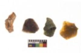 | Description / विवरण | There are n 4 utilized flake cores. There are multi directional irregular scar pattern on them. Two have flat base and two have blunted edges. |