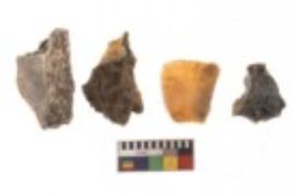 | Description / विवरण | There are n 4 utilized flake cores. There are multi directional irregular scar pattern on them. One has sharp edge and three have blunted edges. |