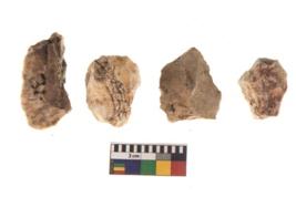 | Description / विवरण | There are n 4 of utilized worked cores and show irregular scar pattern on both dorsal and ventral side. Three have a broken tip. |