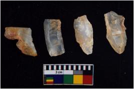 | Description / विवरण | There are n 4 flakes tool; there are large flakes with sides trimmed, Marks of secondary flaking are present on the both the faces. One is pointed functional top. |