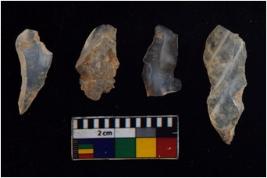 | Description / विवरण | There are n 4 flakes tool; there are large flakes with sides trimmed, Marks of secondary flaking are present on the both the faces. The dorsal is relatively flat. |