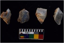 | Description / विवरण | There are n 4 flakes tool; there are flakes tool with prominent flaking marks. It made up of a large flakes with sides trimmed. It is rectangular in shaped. |
