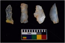 | Description / विवरण | There are n 4 flakes tool; there are large flakes with sides trimmed, Marks of secondary flaking are present on the both the faces. One is pointed functional top. |
