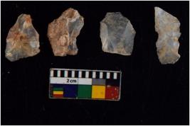 | Description / विवरण | There are n 4 flakes tool; there are flakes tool with prominent flaking marks. It made up of a large flakes with sides trimmed. It is rectangular in shaped. |