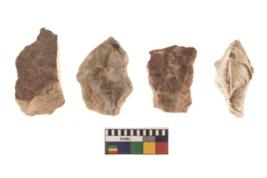 | Description / विवरण | There are n 4 of utilized worked cores and show irregular scar pattern on both dorsal and ventral side. One has a flat base. |