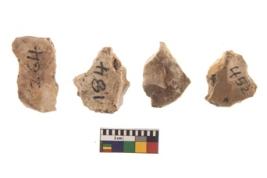 | Description / विवरण | There are n 4 of utilized worked cores and show irregular scar pattern on both dorsal and ventral side. Three are tapering at one end. |