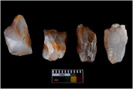| Description / विवरण | Four worked utilised cores. Flakes removed from few sides. Most of them are uneven and few are tapering at one end. |