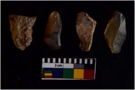 | Description / विवरण | There are n 4 flakes tool; there are large flakes with sides trimmed, Marks of secondary flaking are present on the both the faces. The dorsal is relatively flat. |