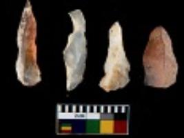 | Description / विवरण | There are n 4 utilized flake cores. There are multi directional irregular scar pattern on them. Two are tapering at one end and two have sharp edges. |