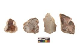 | Description / विवरण | There are n 4 of utilized worked cores and show irregular scar pattern on both dorsal and ventral side. They have sharp edges. |