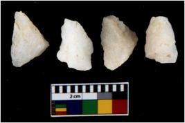 | Description / विवरण | There are n 4 utilized flake cores. One is tapering at one end and three have blunted edges. |