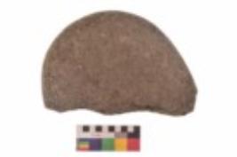 | Description / विवरण | Specimen of an uneven shaped grinding stone. It is brownish in colour and smooth in texture. It has flat base. |