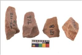 | Description / विवरण | Specimen of flake tools with prominent flaking marks. They are made up of a short flakes with sides trimmed. |