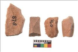 | Description / विवरण | Specimen of flake tools with prominent flaking marks. They are made up of a short flakes with sides trimmed. |