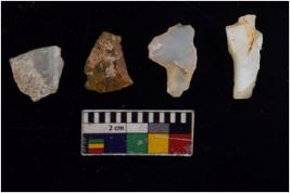 | Description / विवरण | There are n 4 flakes tool; there are flakes tool with prominent flaking marks. It made up of a large flakes with sides trimmed. It is rectangular in shaped. |