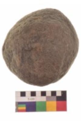 | Description / विवरण | Specimen of a roughly round shaped hammerstone with smooth texture. It is brownish in colour and round in cross section. |