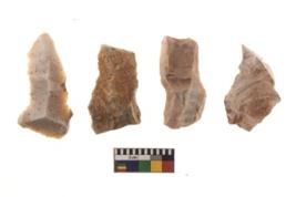 | Description / विवरण | There are n 4 of utilized worked cores and show irregular scar pattern on both dorsal and ventral side. Two have a broken tip. |
