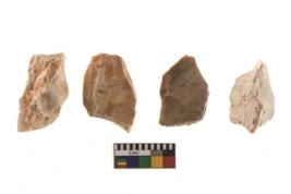 | Description / विवरण | There are n 4 of utilized worked cores and show irregular scar pattern on both dorsal and ventral side. Three are tapering at one end. |