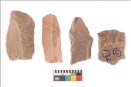 | Description / विवरण | Specimen of flake tools with prominent flaking marks. They are made up of a short flakes with sides trimmed. |