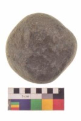 | Description / विवरण | Specimen of a roughly round shaped hammerstone with smooth texture. It is brownish in colour and round in cross section. |