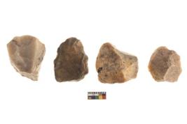 | Description / विवरण | There are n 4 of utilized worked cores and show irregular scar pattern on both dorsal and ventral side. Three have a flat base. |