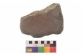 | Description / विवरण | Specimen of an uneven shaped grinding stone. It is brownish in colour and smooth in texture. It has flat base. |
