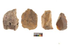 | Description / विवरण | There are n 4 of utilized worked cores and show irregular scar pattern on both dorsal and ventral side. Three are tapering at one end. |