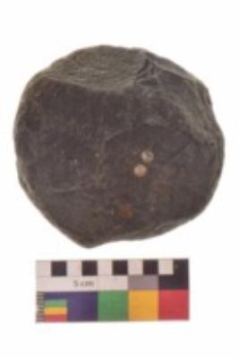 | Description / विवरण | Specimen of a roughly round shaped hammerstone with smooth texture. It is brownish in colour and round in cross section. |