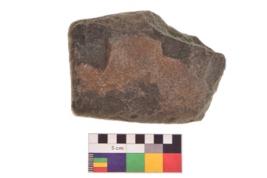 | Description / विवरण | Specimen of an uneven shaped saddle quern. It is brownish in colour and smooth in texture. It is round in cross section. |