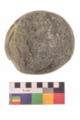 | Description / विवरण | Specimen of a roughly round shaped hammerstone with smooth texture. It is brownish in colour and round in cross section. |