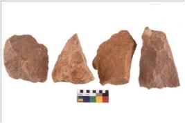 | Description / विवरण | Specimen of flake tools with prominent flaking marks. They are made up of a short flakes with sides trimmed. |