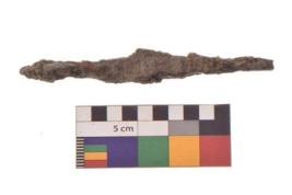 | Description / विवरण | Specimen of a long nail with sharp pointed functional bottom end and round slightly projected top. |