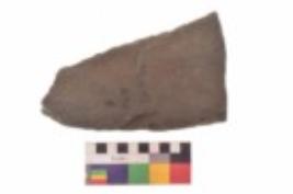 | Description / विवरण | Specimen of a roughly oval shaped saddle quern. It is brownish in colour and smooth in texture. It is roughly round in cross section. |
