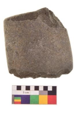 | Description / विवरण | Specimen of an uneven shaped saddle quern. It is brownish in colour and smooth in texture. It is round in cross section. |