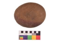 | Description / विवरण | Specimen of an uneven shaped hammerstone with smooth texture. It is brownish in colour and has flat base. |