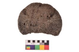 | Description / विवरण | Specimen of an uneven shaped grinding stone. It is brownish in colour and smooth in texture. It has flat base. |