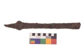 | Description / विवरण | Specimen of a point with sharp pointed functional bottom end and round slightly projected top it is highly rusted in present condition. |
