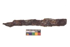 | Description / विवरण | Specimen of a long nail with sharp pointed functional bottom end and round slightly projected top. |