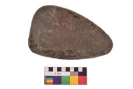 | Description / विवरण | Specimen of an handaxe with one elongated side for holding purpose. It is blackish in colour and smooth in texture. |