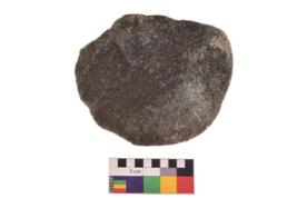 | Description / विवरण | Specimen of an uneven shaped hammerstone with smooth texture. It is blackish in colour and has flat base. |