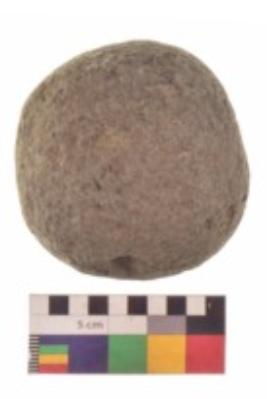 | Description / विवरण | Specimen of a roughly round shaped hammerstone with smooth texture. It is brownish in colour and round in cross section. |