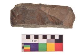 | Description / विवरण | Specimen of an uneven shaped saddle quern. It is brownish in colour and smooth in texture. It is round in cross section. |
